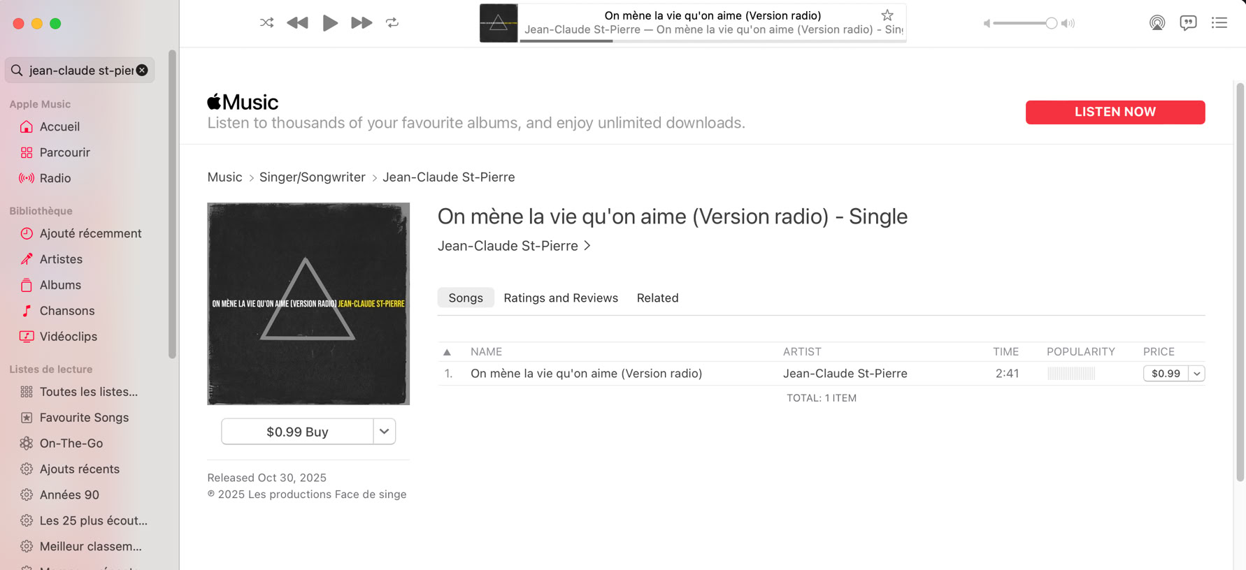 La chanson On mène la vie qu’on aime est maintenant disponible sur toutes les plateformes de streaming (Spotify, Music, Deezer, YouTube, Amazon Music, TikTok et plusieurs autres).